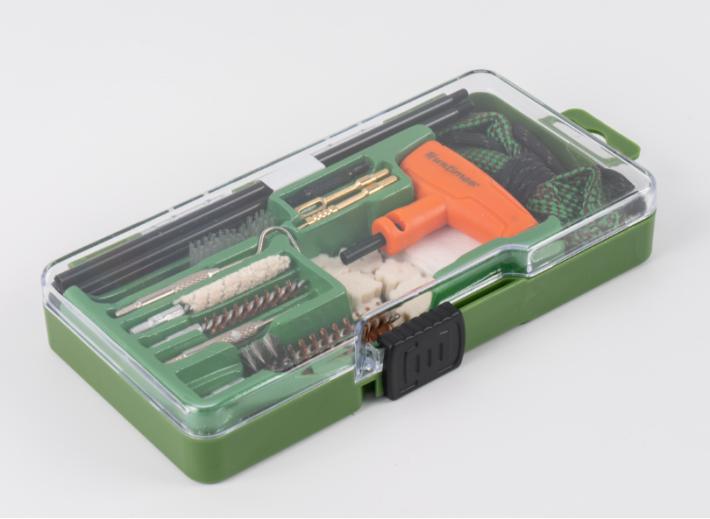 Bộ dụng cụ làm sạch có vỏ ABS chắc chắn và nhẹ này của chúng tôi bao gồm bàn chải và giẻ lau có lỗ khoan 5,56mm/2,23cal, thích hợp để làm sạch hầu hết các loại súng cầm tay tiêu chuẩn. Ngoài ra, chúng tôi còn cung cấp chốt lỗ 5,56mm và tay cầm chữ T, đảm bảo rằng sau khi vệ sinh, chúng có thể được làm sạch lại. Vì vậy, bộ dụng cụ vệ sinh súng ngắn này hầu như phù hợp để vệ sinh mọi loại súng ngắn. Mỗi bộ phận của chúng tôi đều được in số cỡ nòng tương ứng, ngay cả khi bạn không phải là người dọn dẹp chuyên nghiệp, việc chọn kích thước tương ứng sẽ rất thuận tiện. Bộ dụng cụ vệ sinh này cung cấp tất cả những vật dụng bạn cần để giữ súng của bạn luôn ở tình trạng hoàn hảo!